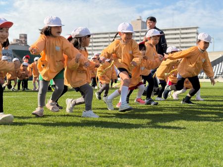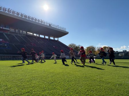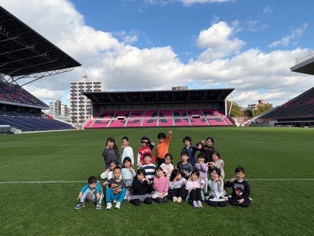 11月、12月で4園・約220名の園児の皆さんが来場し、スタジアムの天然芝ピッチを開放して、