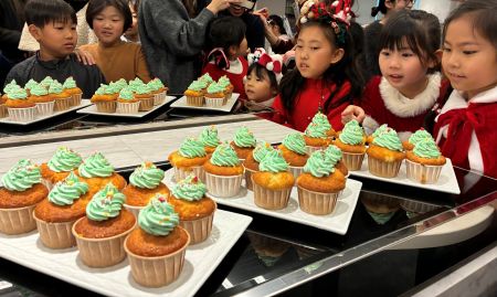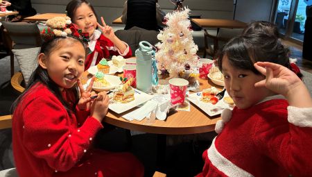 イベントの最後には、みんなでケーキを囲むケーキタイムを実施しました。友だちと並んでケーキを食べながら楽しそうに会話をする姿や、笑顔いっぱいで味わう様子が見られ、会場は終始あたたかな雰囲気に包まれていました。クリスマスらしい、思い出に残るひとときとなりました。